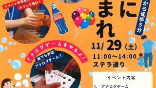 11月29日(土)11:00~14:00、泉町通り(ステラ通り)にて「泉町に集まれ!」を行います。 当日は、宇都宮大学生によるゲーム大会、鉄道模型、子育て情報交換会や勉強会など 楽しめる、ためになる催しがあります。ご家族連れ、お友達同士など...